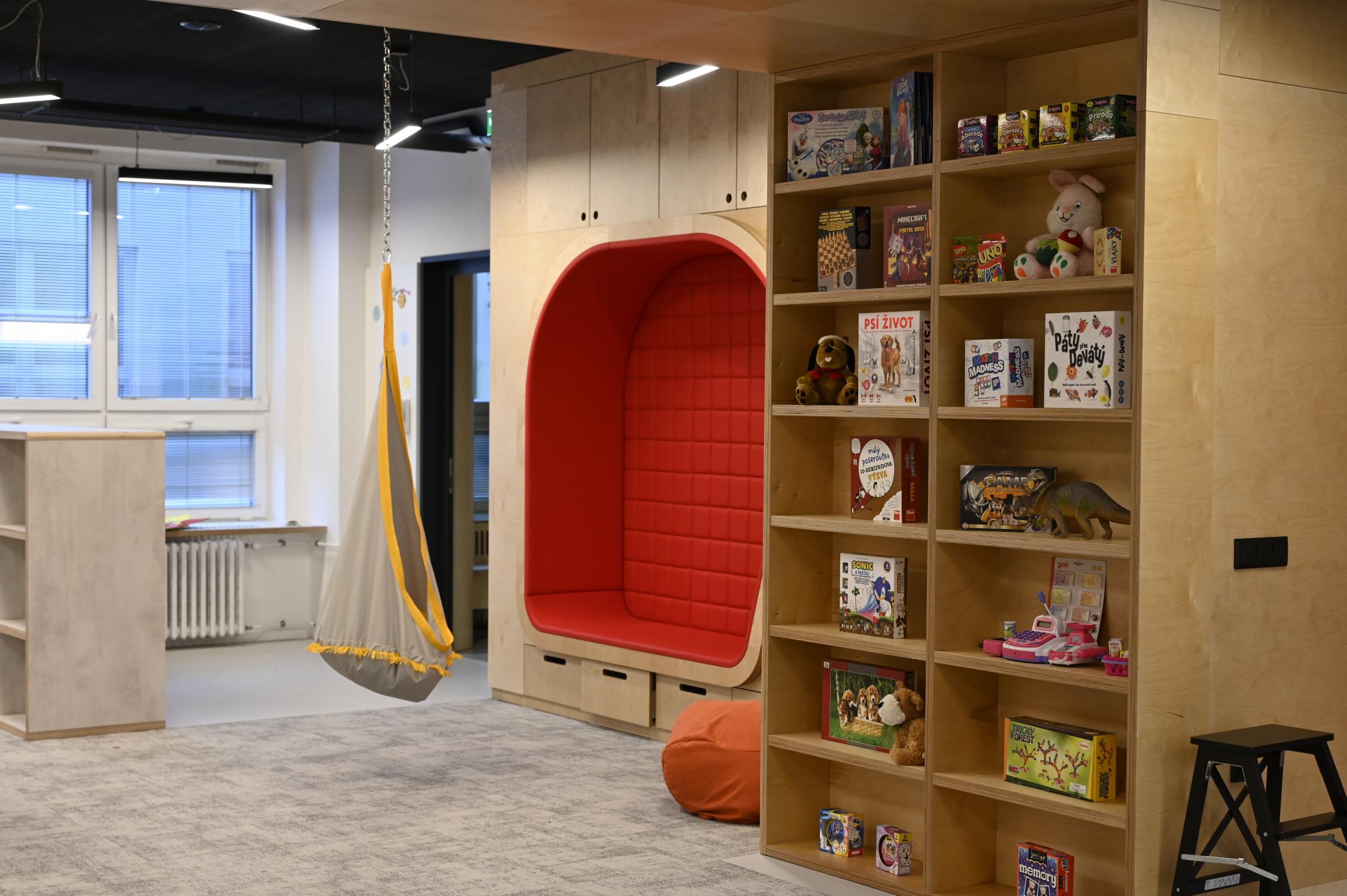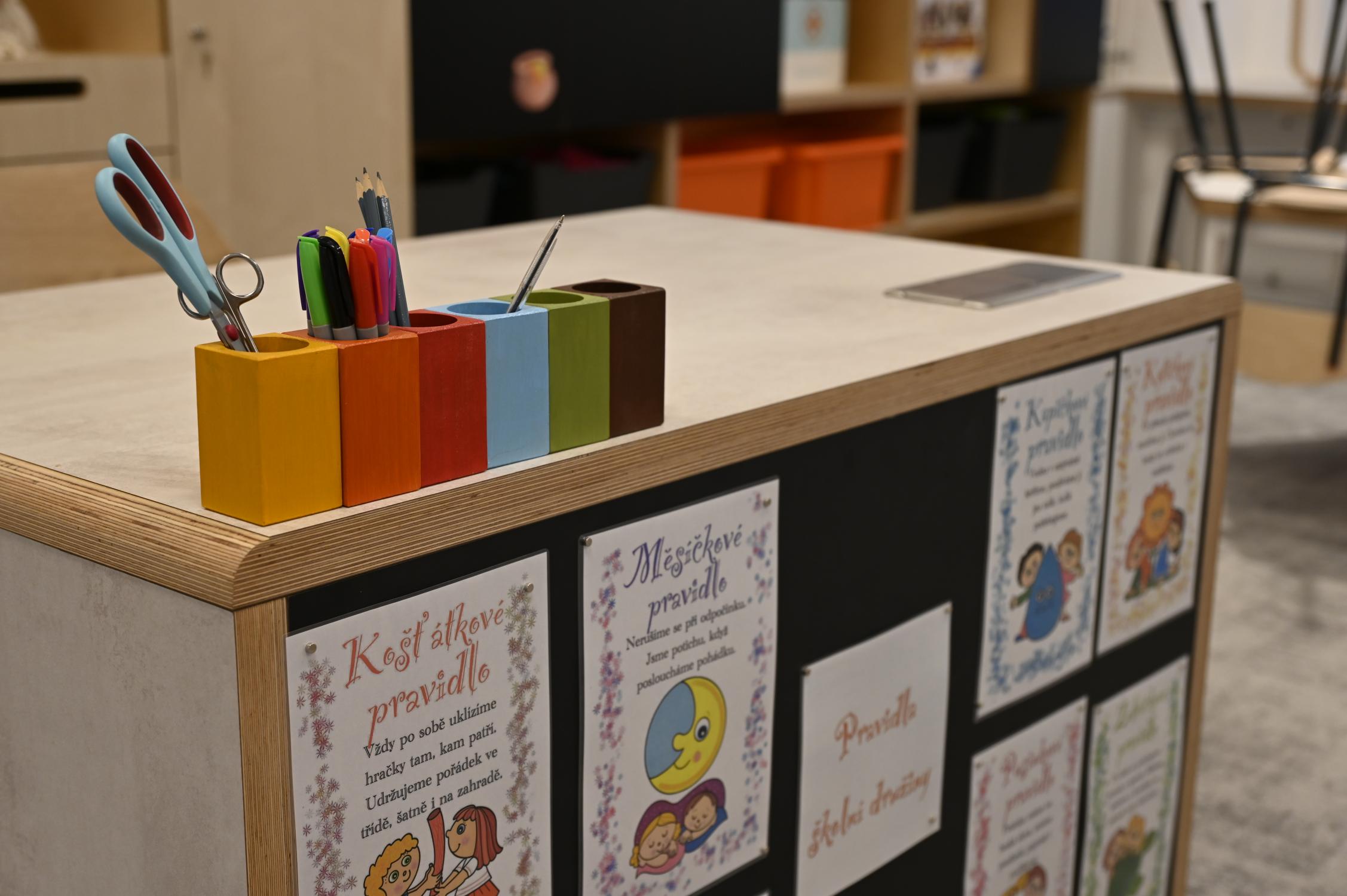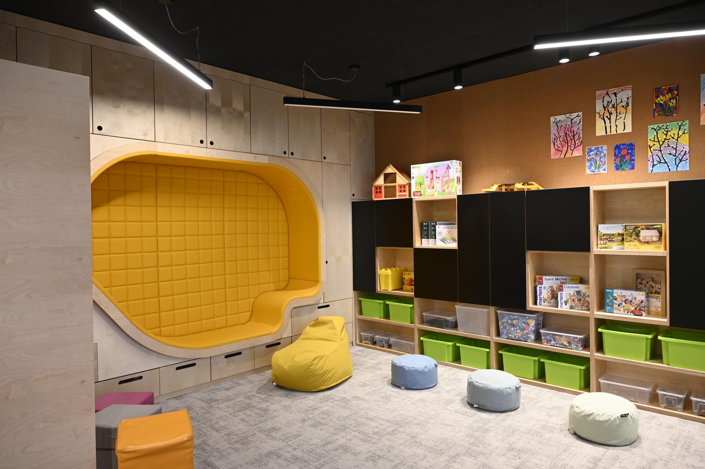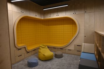 Interiéry jsou vybaveny moderním nábytkem, relaxačními zónami, herními prvky i dostatkem úložných prostor. Děti mají k dispozici širokou škálu pomůcek pro tvoření, hry i odpočinek. Prostory jsou koncipovány tak, aby podporovaly samostatnost dětí, jejich fantazii a přirozenou potřebu objevování.