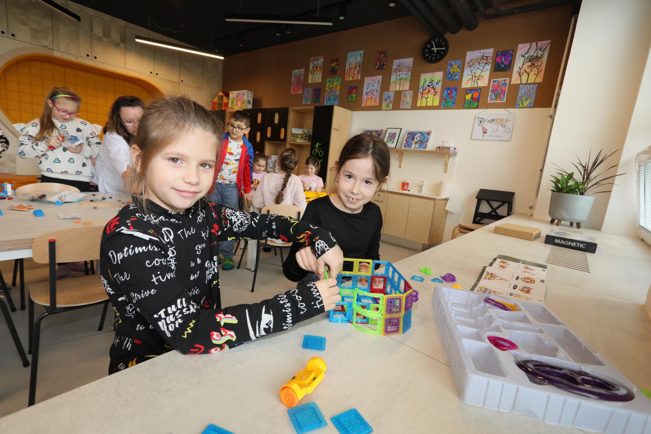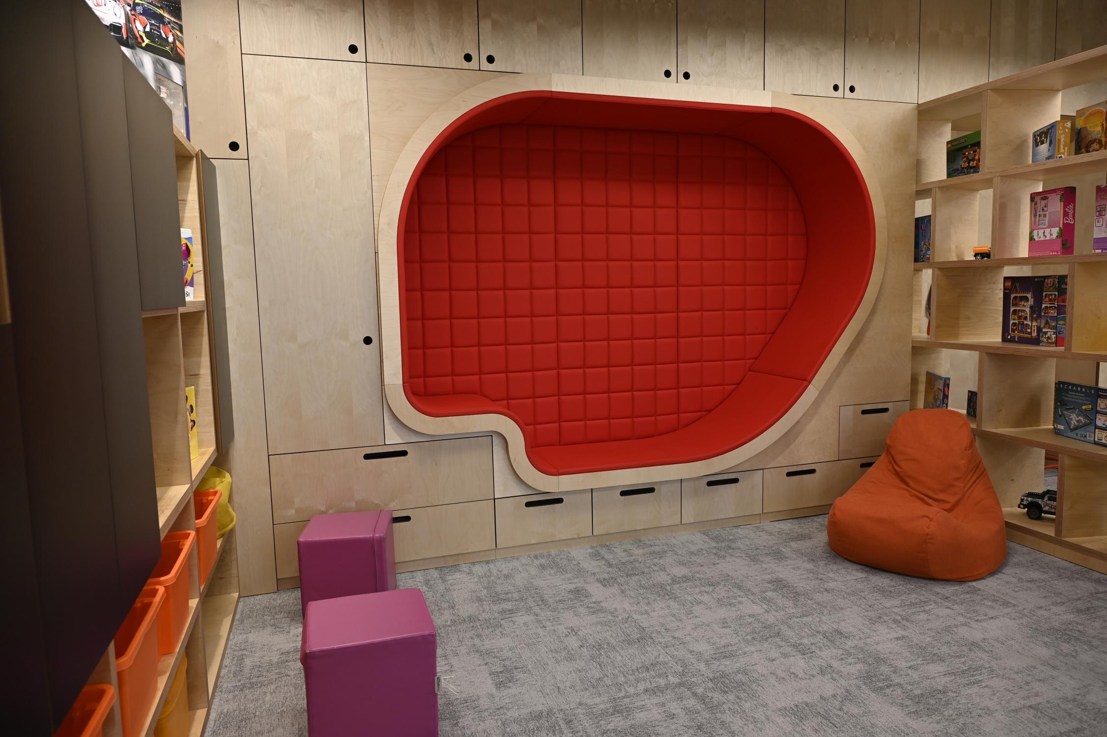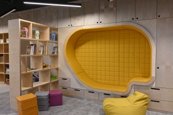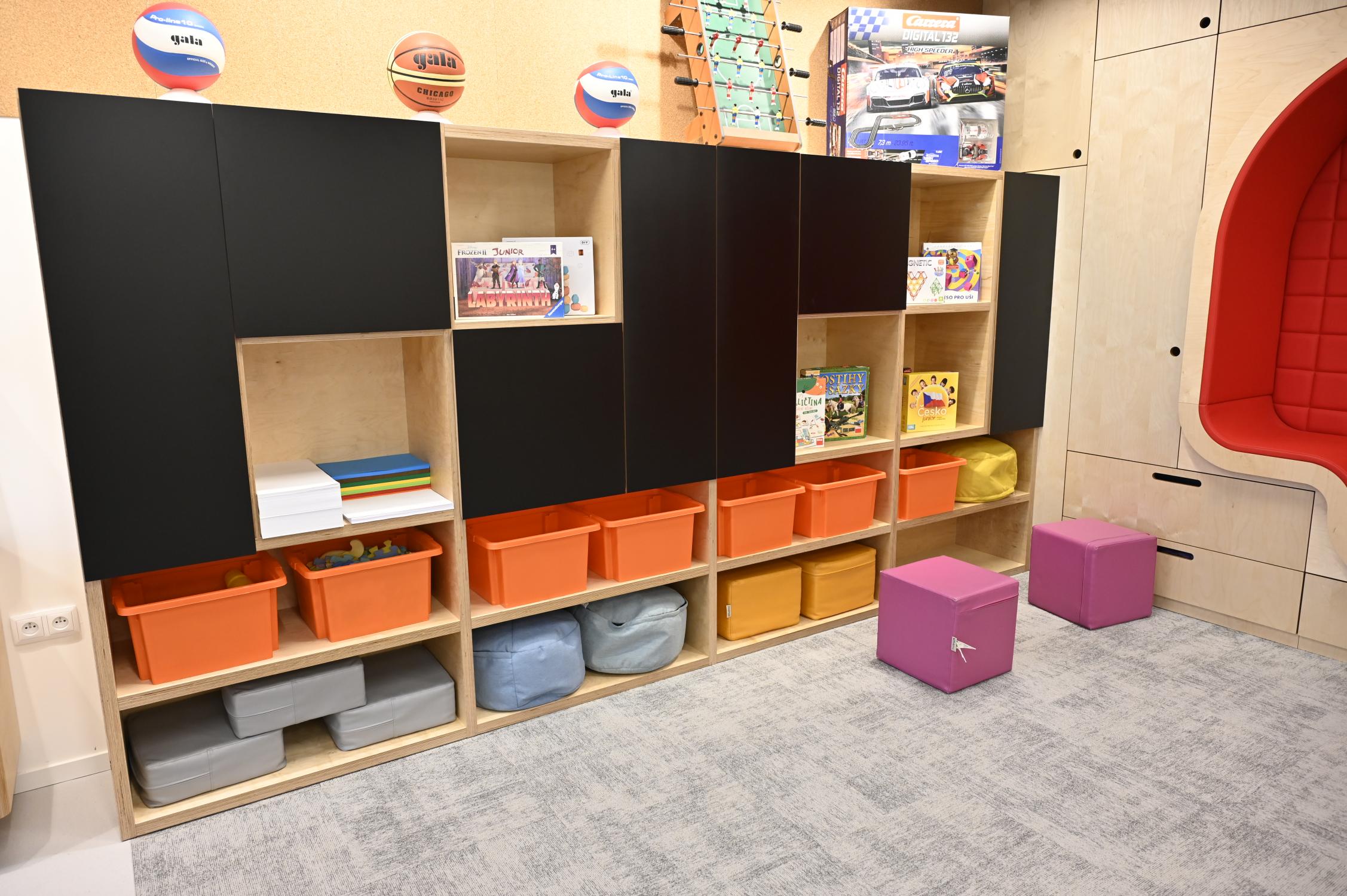 Interiéry jsou vybaveny moderním nábytkem, relaxačními zónami, herními prvky i dostatkem úložných prostor. Děti mají k dispozici širokou škálu pomůcek pro tvoření, hry i odpočinek. Prostory jsou koncipovány tak, aby podporovaly samostatnost dětí, jejich fantazii a přirozenou potřebu objevování.